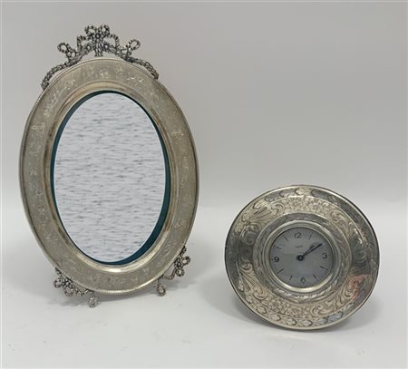 Lotto composto da una cornice ovale portafoto in argento, un orologio da tavolo