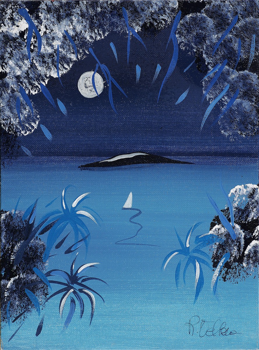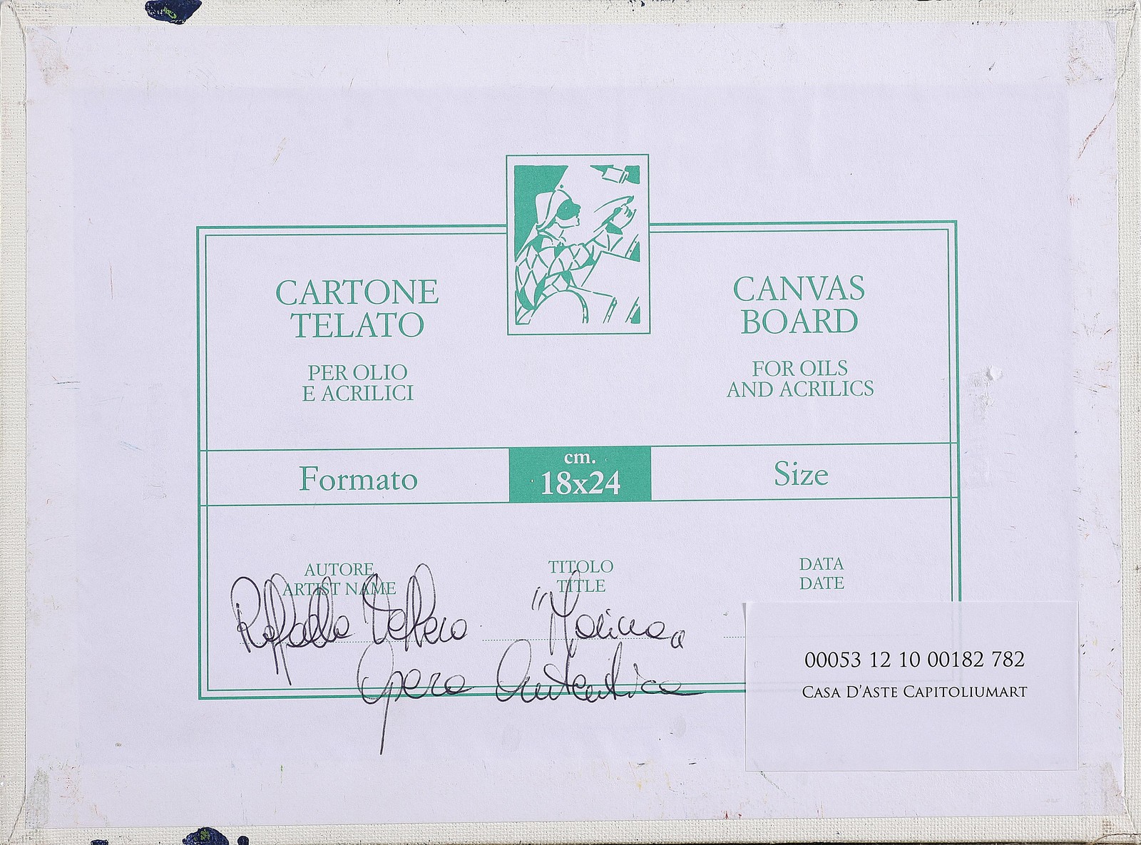 VELLERA RAFFAELLA (n. 1975) Marina. Olio su cartone telato. Cm 24x18. Autentica dell'artista su fotografia. Firma in basso a destra. Al retro titolo, tecnica e firma per autentica.