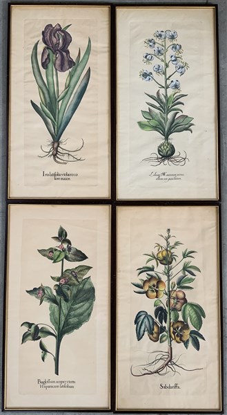 Lotto 1076 | Gruppo di quattro incisioni acquerellate a soggetto botanico (foglio cm 58x30)