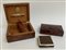 Gruppo di tre scatole, una lastronata in radica (portasigari), una in tartaruga