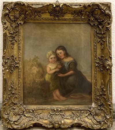 Scuola del XIX Secolo "Bimbe" olio su tela (cm.31x25) In cornice (difetti)