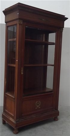 Armadio vetrina in stile impero, decorato con montanti intagliati a colonne cor