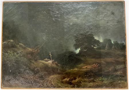 Da Massimo D'Azeglio (Torino 1798 - 1866) - " Paesaggio notturno", olio su tela