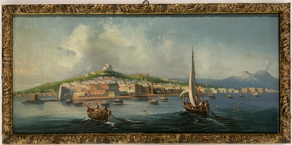 Ignoto, "Veduta di Posillipo", olio su tela (cm 38x84), in cornice
