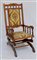 Poltrona a dondolo in legno di frutto. Schienale e braccioli decorati a colonne
