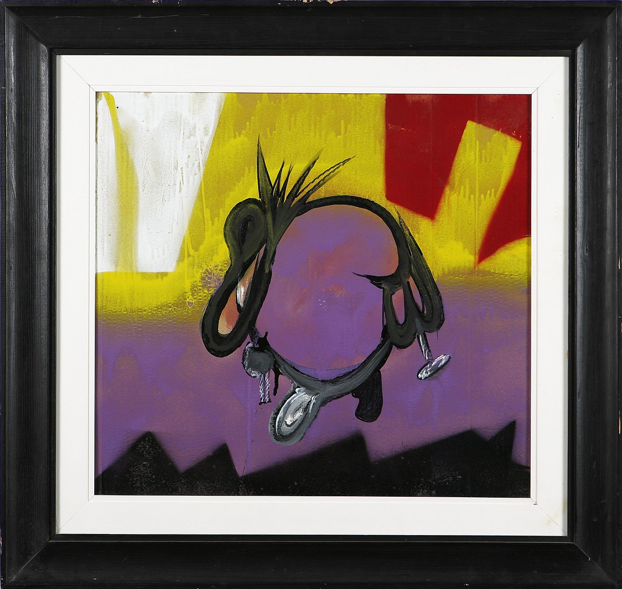 DANGELO SERGIO (n. 1932) Cielo giallo, 1985. Tecnica mista su cartone. Cm 52,5x57. Al retro titolo e anno.