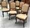 Gruppo di sei sedie in noce con schienale, fascia e gambe sagomate e intagliate