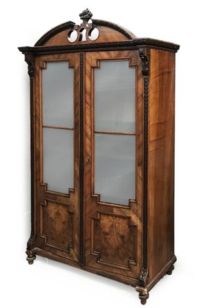 Armadio da ufficio in noce intagliato a motivi rinascimentali (cm 181x189x51) (