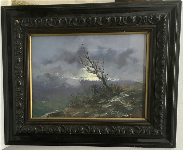 "L'arrivo del temporale" olio su compensato (cm 25x34) firmato in basso a destra, in cornice