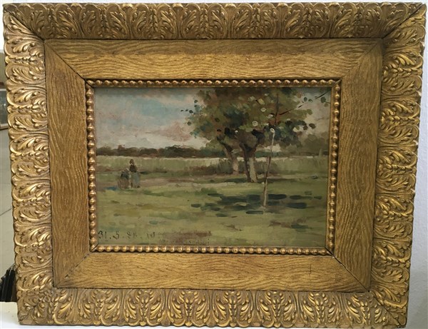 Firma indecifrata "Paesaggio" olio su tavola (cm 21x30) firmato in basso al centro, in cornice