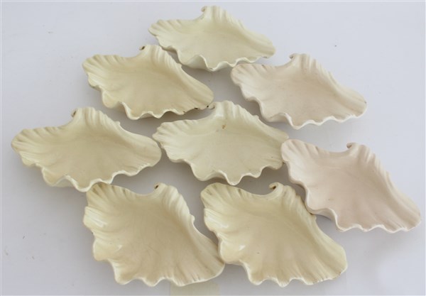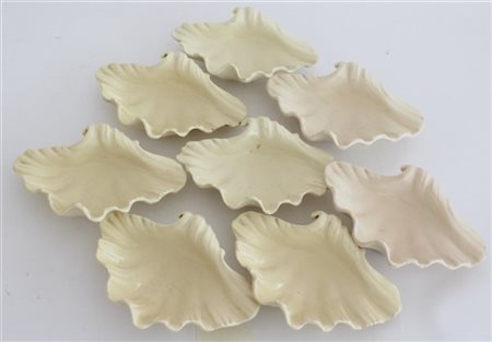 Manifattura italiana, gruppo di otto portacenere in ceramica a forma di conchiglia (lievi difetti)
