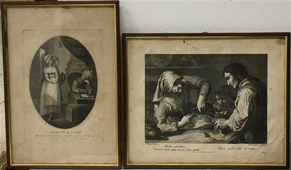 Lotto composto da sei tra incisioni, litografie e acquaforti, di soggetti, misure ed epoche diverse, in cornici (difetti)
