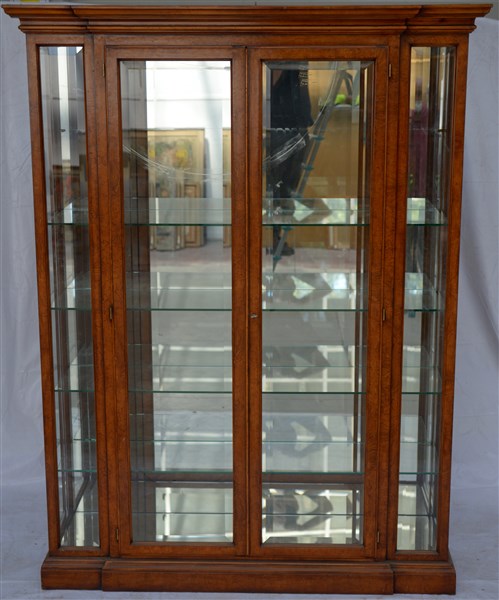 Vetrina a due ante con montanti radicati e vetri molati. Schienale a specchio.