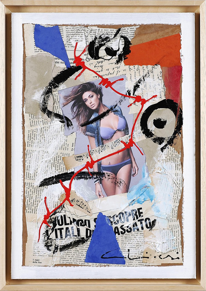 CHIESI GIORGIO (n. 1941) Belen Rodriguez. Tecnica mista su cartone. Cm 50x35. Colori collage su alveolare 14mm. Autentica dell'artista su fotografia, a cura dell'Archivio generale Giorgio Chiesi, Busseto. Firma in basso a destra.