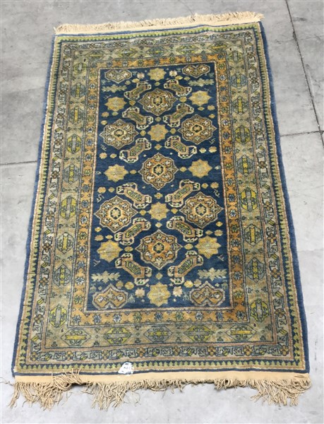 Decoro con motivo Herati nei toni dell’Ocra, giallo e bianco su fondo azzurro. (cm 157x94) (difetti)