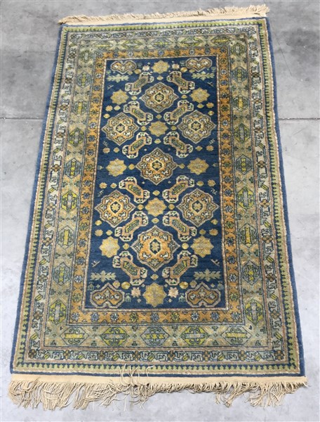 Decoro con motivo Herati nei toni dell’Ocra, giallo e bianco su fondo azzurro. (cm 157x94) (difetti)