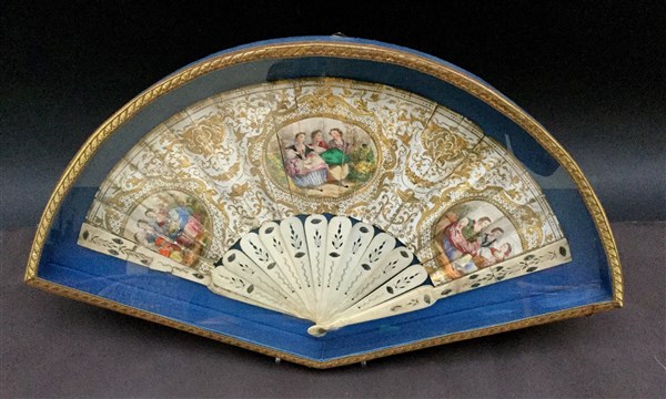 Due ventagli di epoche e decori diversi, in teche (difetti)