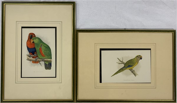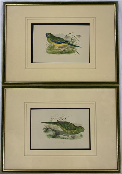 Gruppo di quattro litografie a colori del secolo XIX raffiguranti volatili (cm 25x18) in cornici