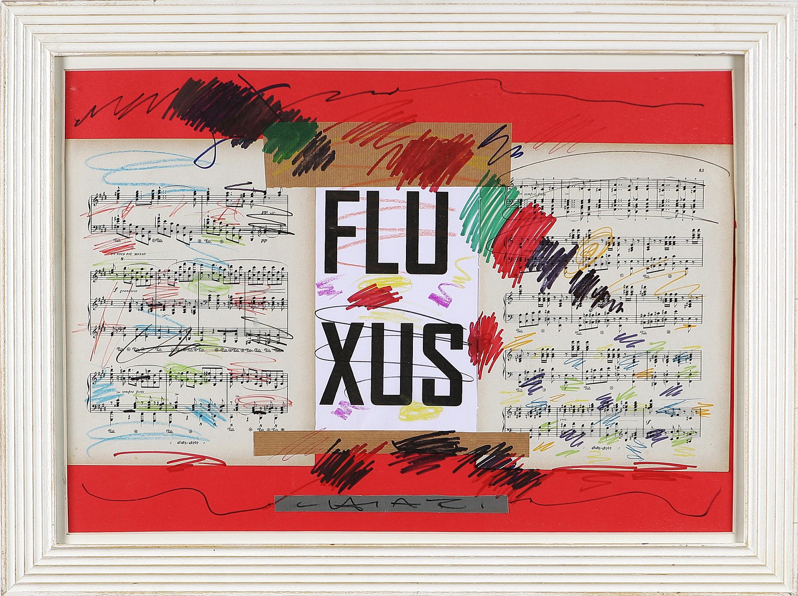 CHIARI GIUSEPPE (1926 - 2007) Fluxus. Tecnica mista e collage su carta. Cm 50x70. Autentica dell'artista su fotografia. Firma in basso al centro.