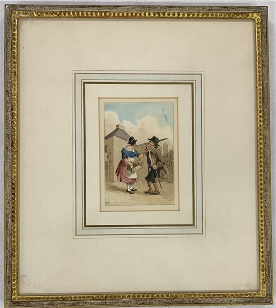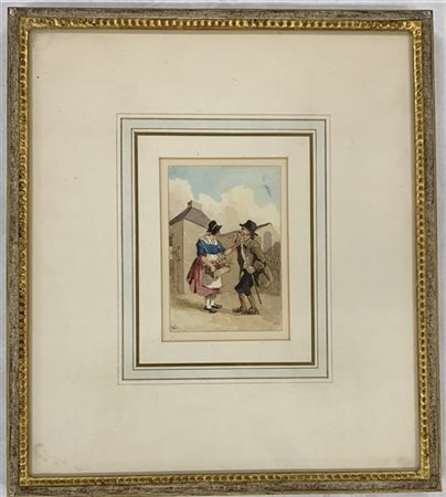 Maestro del secolo XIX "La fioraia" acquarello (cm 11x8) siglatoW.L. in basso a sinistra, in cornice (difetti)