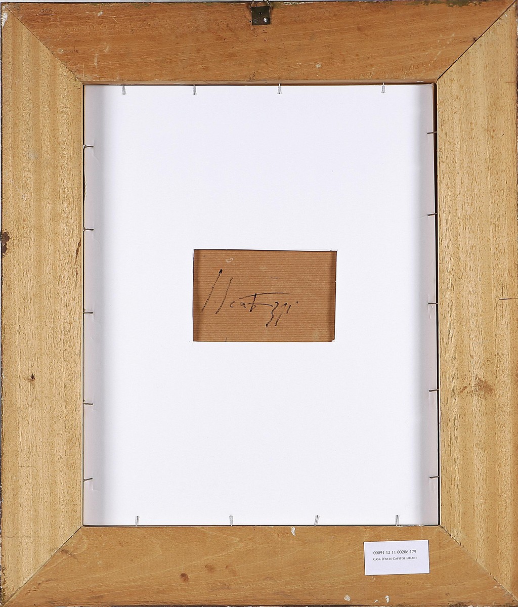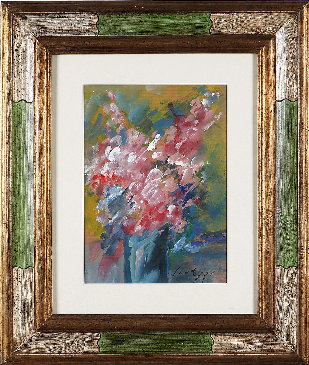 SCATIZZI SERGIO (1918 - 2009) Fiore. Olio su carta. Cm 38x28. Autentica dell'artista su fotografia. Firma in basso a destra. Al retro firma.