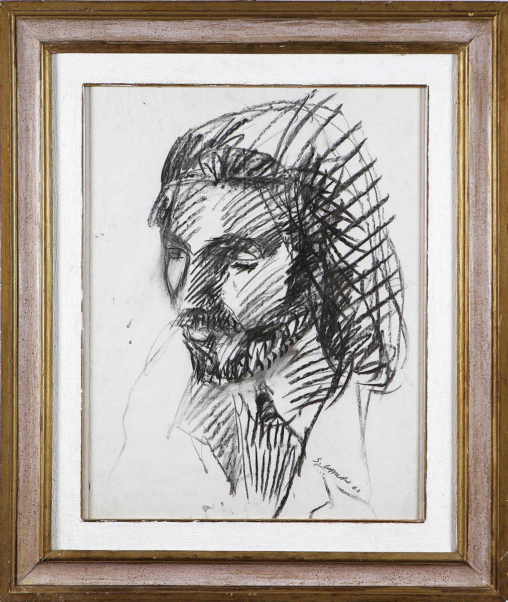 LOFFREDO SILVIO (n. 1921) Volto, 1962. Carboncino su carta. Cm 70x50. Firma e data in basso a destra.