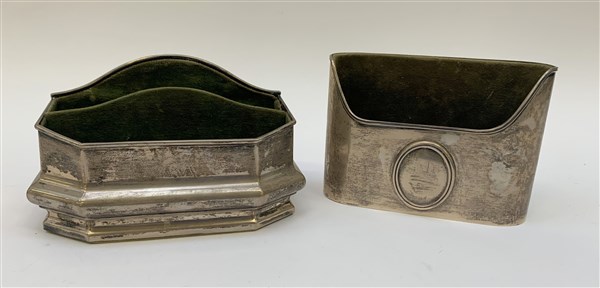 Lotto composto da due portalettere in argento con interni in velluto (g lordi 800 ca.)