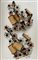 Coppia di appliques a tre fiamme in metallo con pendenti in vetro incolore e rosa a forma di fiori (h. cm 48) (difetti)