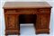 Scrivania da centro lastronata in noce con tre cassetti in linea e due ante. Pi