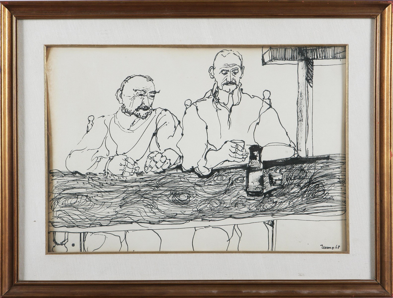 TERRUSO SAVERIO (1939 - 2003) Personaggi, 1968. China su carta. Cm 32,5x48. Firma e data in basso a destra. Al retro firma per autentica.