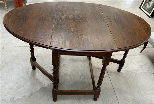 Tavolino allungabile ad alette in rovere con otto sostegni a torciglione (cm 90x77x52) (difetti)