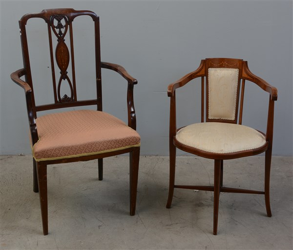 Lotto 1630 | Lotto composto da una sedia con schienale a giorno e una poltroncina da camera.