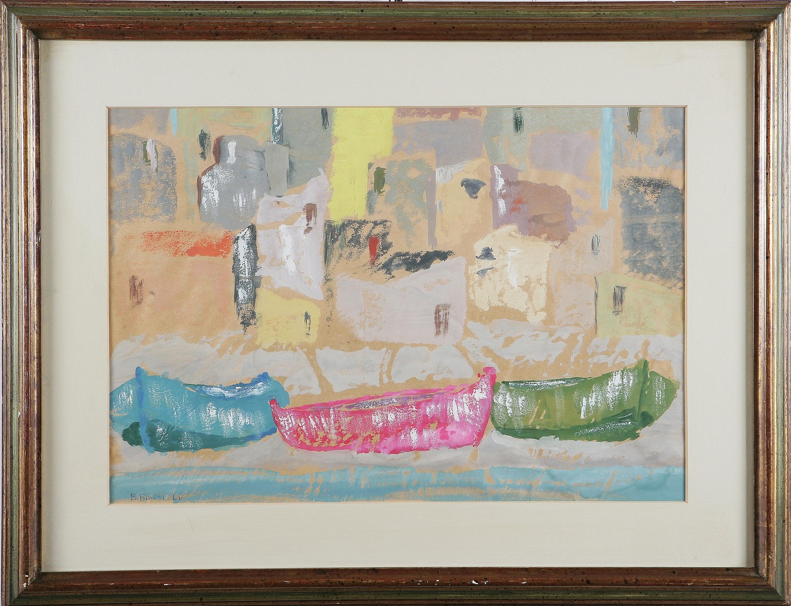 FANESI BRUNO (n. 1915) Barch, 1955. Tempera su carta. Cm 33x48. Firma e anno in basso a sinistra.
