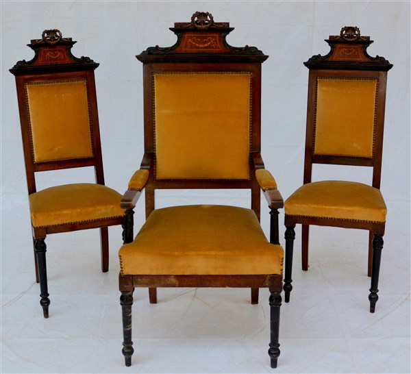 Lotto composto da una poltrona e una sedia in legno con montanti ebanizzati e s