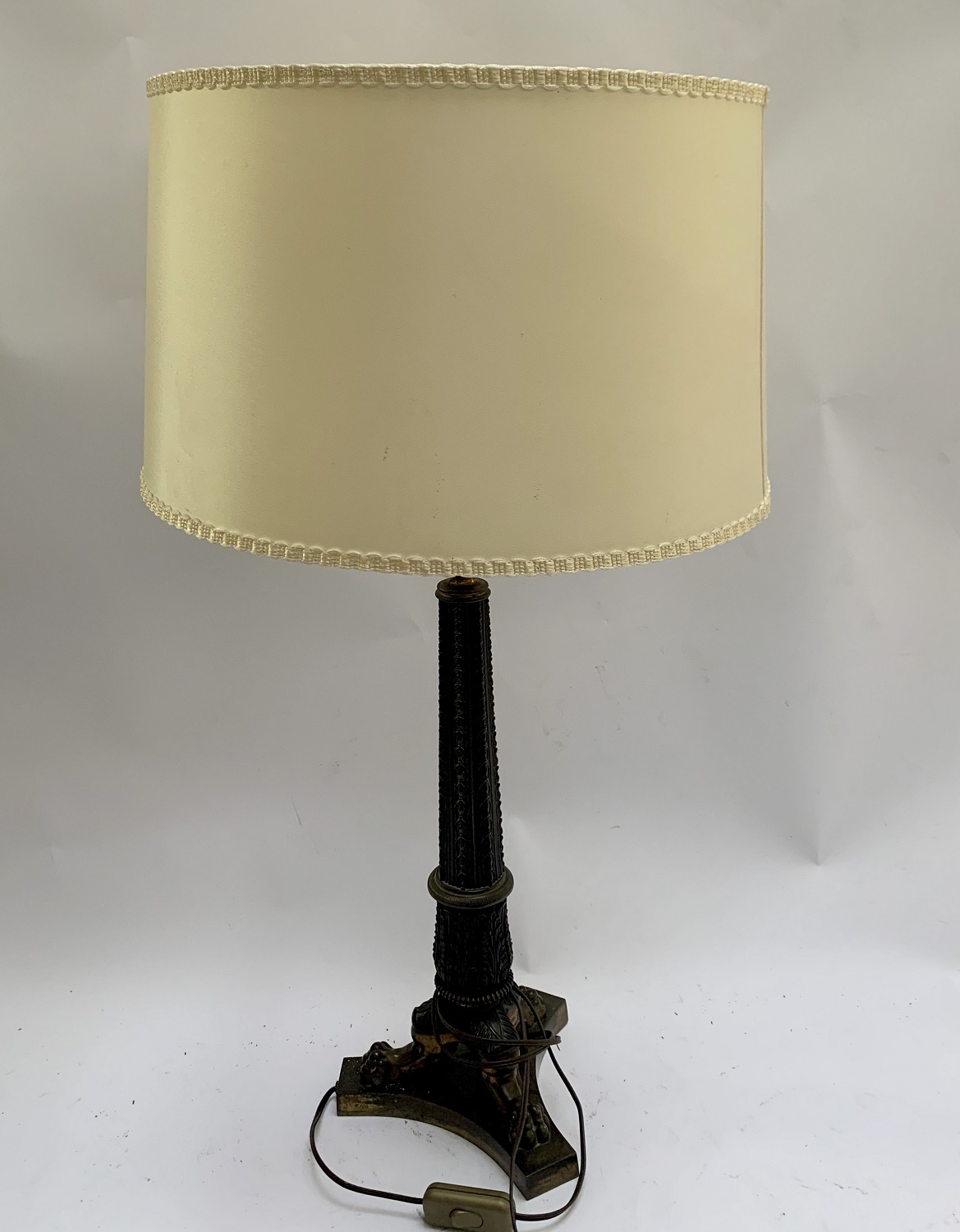 Candeliere in bronzo con fusto a colonna decorato a motivi vegetali, piedi a zampa ferina, poggianti su mensola sagomata (h. cm 52)