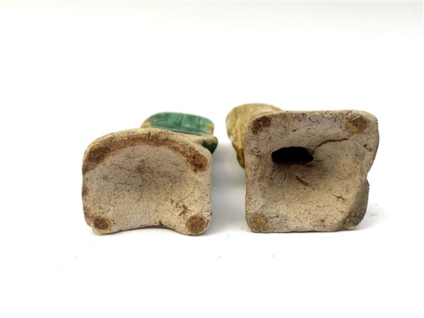 Due statuine a smalto sancai. Cina, dinastia Ming (1368-1644)(h max cm 13) (dif