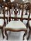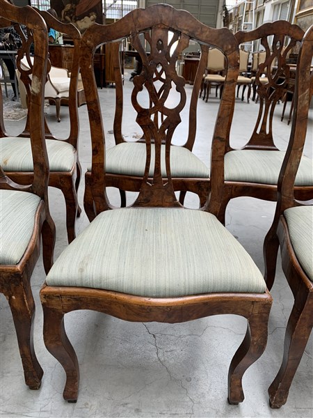 Gruppo di otto sedie in noce con schienale a giorno e gambe mosse (difetti)