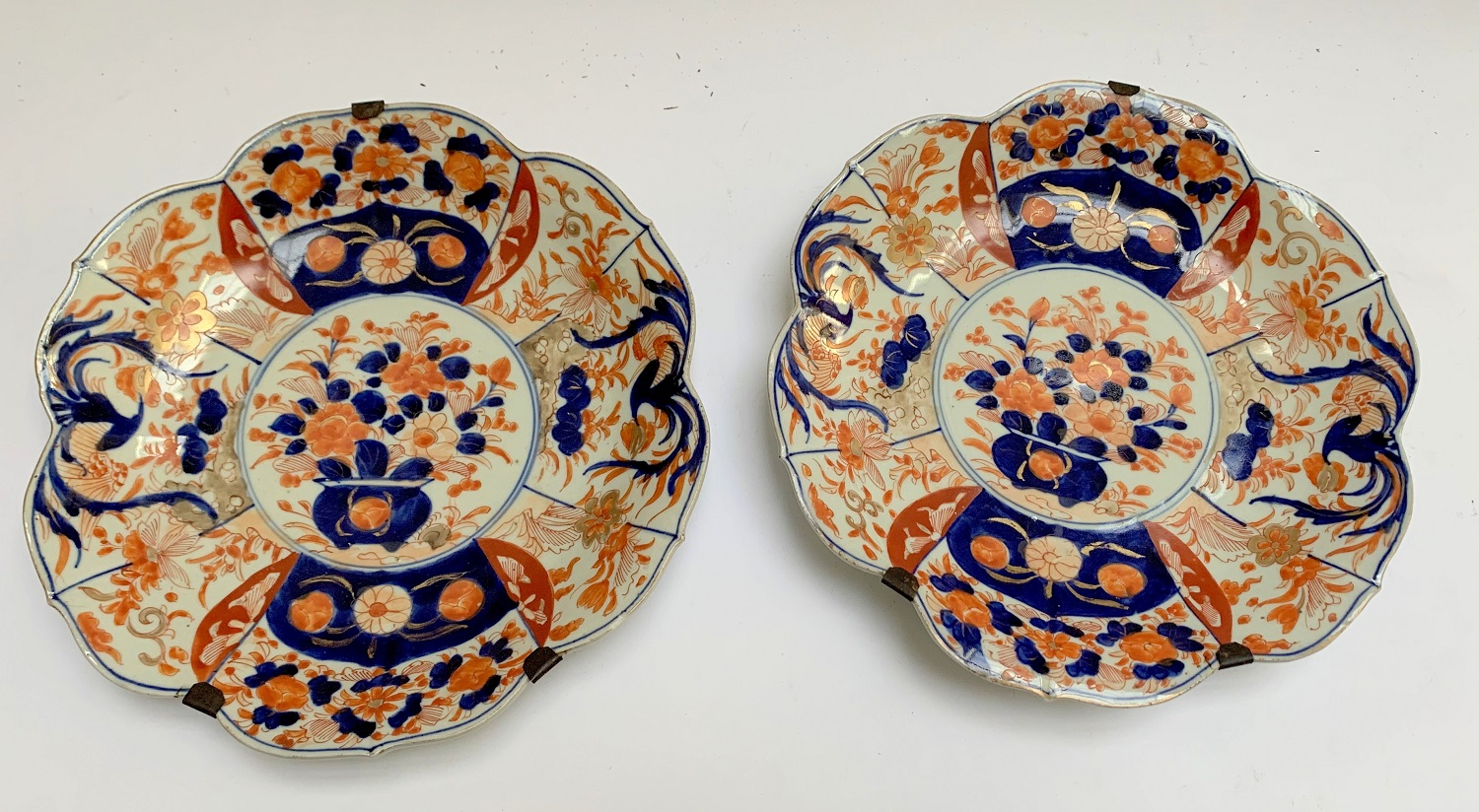 Coppia di piatti in porcellana in stile Imari con decoro floreale