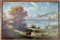 Firma indecifrata "Paesaggio con lago alpino e contadinella" olio su tela (cm 30x45) In cornice