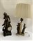 Lotto formato da una lampada in alabastro con allegorie delle arti a tutto tond