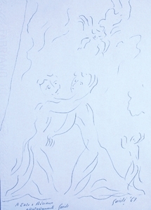 GUIDI VIRGILIO (Roma 1891 - Venezia 1984 ) “Incontro” 1967 Biro su carta cm. 32.5x24 Firma ed anno in basso a destra e dedica ad personam in basso a sinistra.