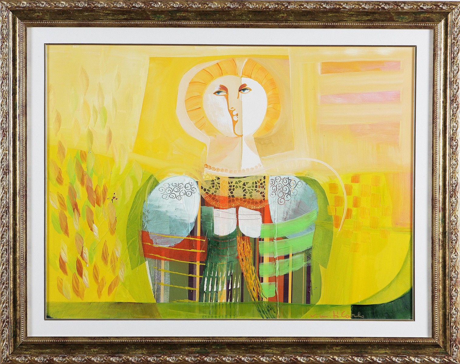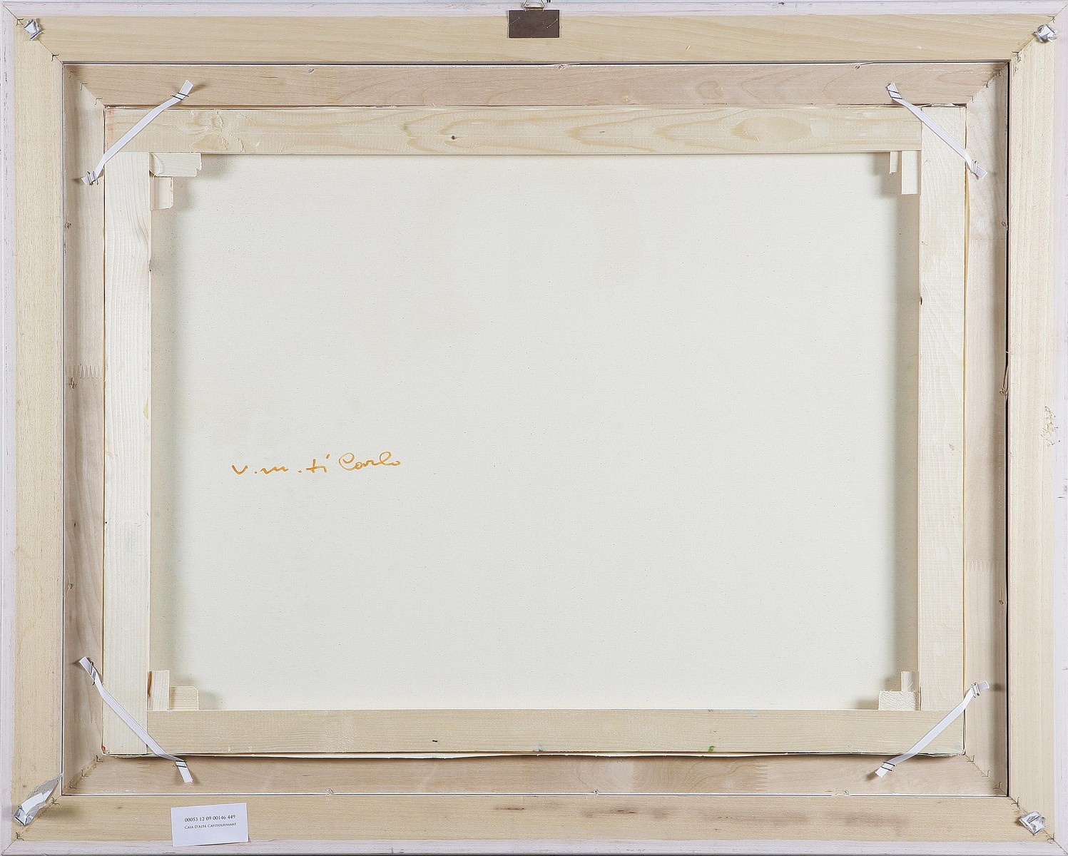 DI CARLO VITTORIO MARIA (n. 1937) Una figura. Olio e collage su tela. Cm 60x80. Autentica dell'artista su fotografia. Firma in basso a destra. Al retro firma.