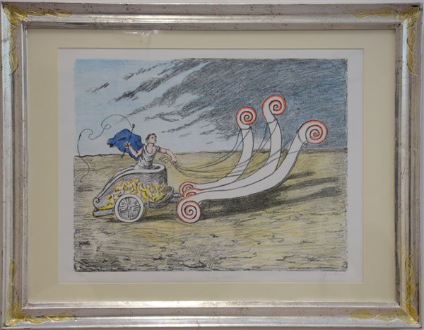 Giorgio de Chirico "La biga invincibile" litografia a colori cm 70x50 numerata