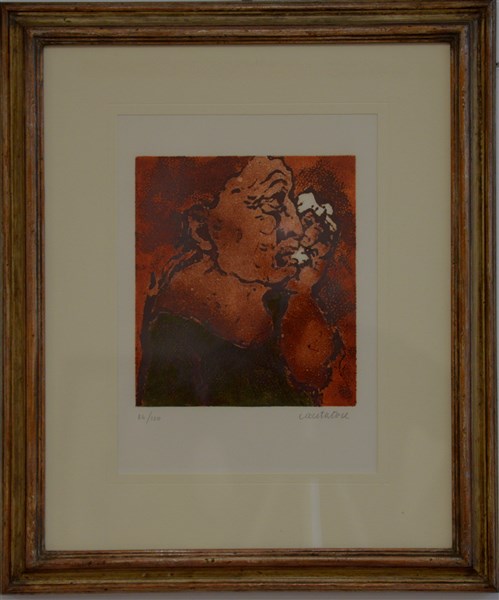 Domenico Cantatore "Senza titolo" serigrafia a colori cm 24,5x21,5 numerata 84/