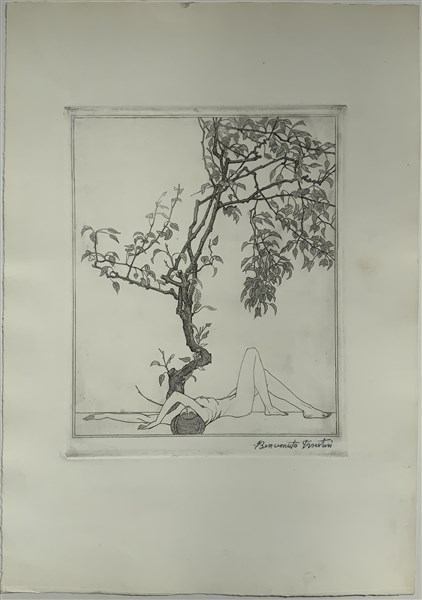 Benvenuto Disertori "Il pero" 1948 acquaforte (lastra cm 29,6x23,7; foglio cm 50
