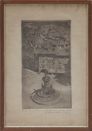 Benvenuto Disertori "Trento. Nella piazza del Duomo la fontana del Nettuno" 1918