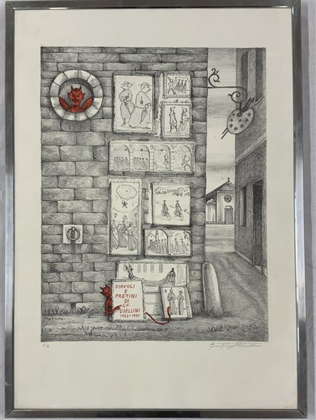 Lotto 1850 | Gianfilippo Usellini "Diavoli e pretini" litografia - prova d'artista cm 66x46