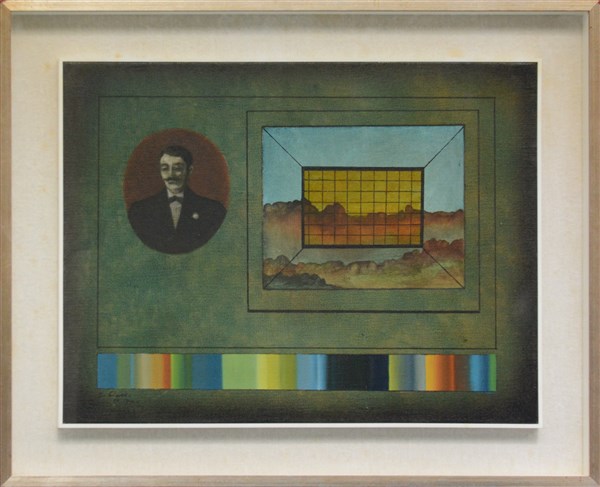 Guido Biasi "Mnemoteca" 1970 olio su tela cm 46x61 firmato e datato in basso a s