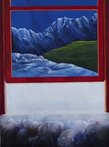 SARDO ETTORE (RAPALLO 1940) “Finestra su paesaggio” Olio su tela cm. 70x50 Firma in basso a destra. Autentica dell'autore a tergo dell'opera.