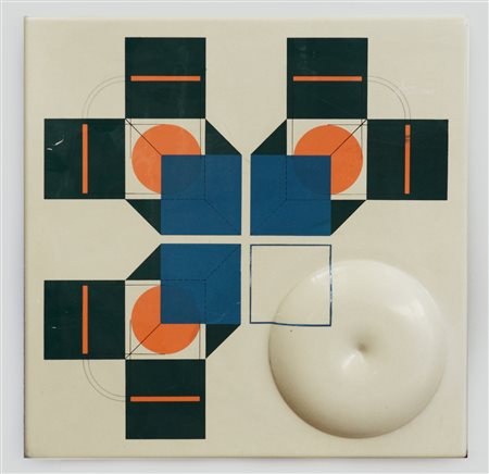 Agostino Bonalumi "Multiplo" serigrafia su polistirolo termoformato cm 50x50 nu
